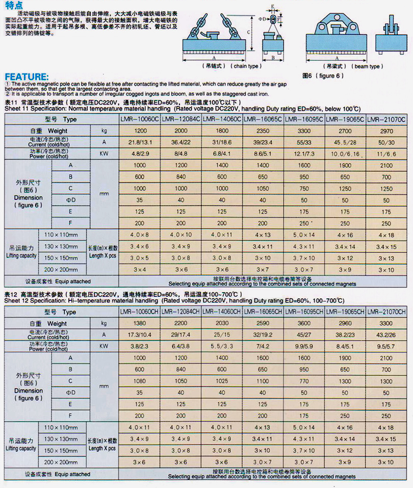 LMR-C系列吊運(yùn)高低參差不齊方坯、圓坯,型鋼用活動磁極矩形起重電磁鐵