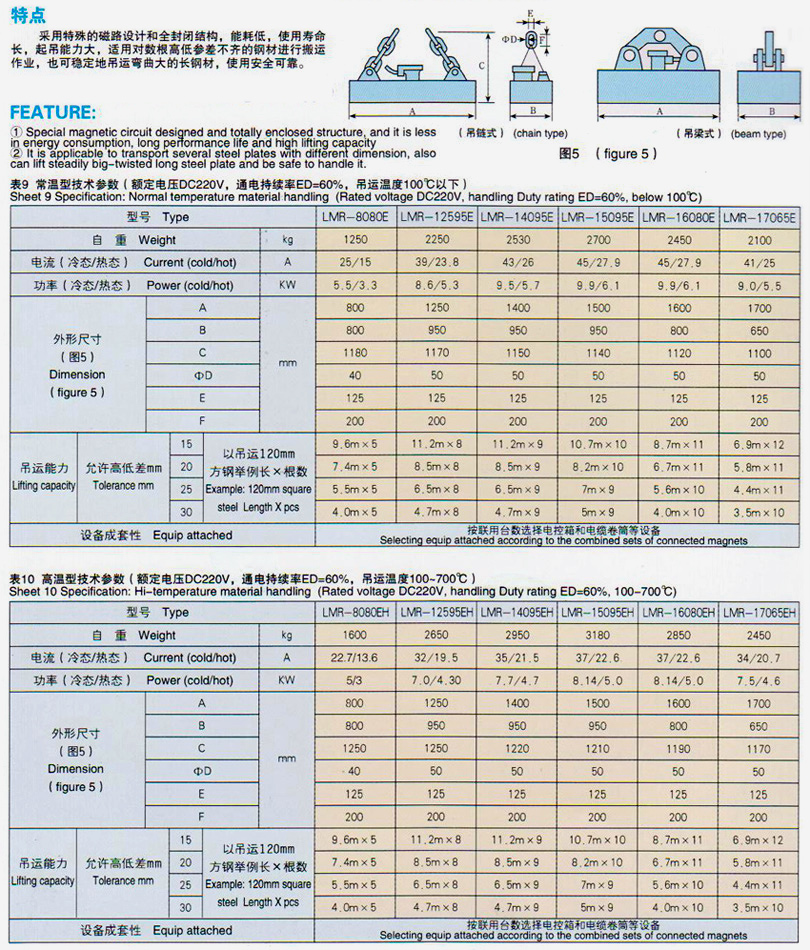 LMR-E系列吊運(yùn)上下有高低差的長(zhǎng)鋼坯用矩形起重電磁鐵