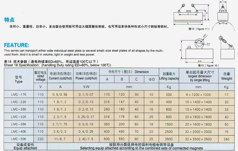 LMC-K系列吊運(yùn)鋼板用小圓形起重電磁鐵